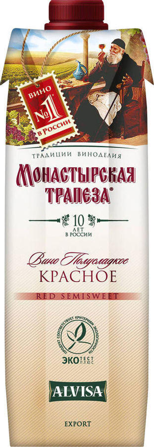 Вино «Монастырская Трапеза» красное полусладкое 11% 1.0л | Gradus Market