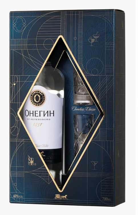 Водка «Онегин» сув. кор. п/у +2 рюмки 40% 0.7л | Gradus Market