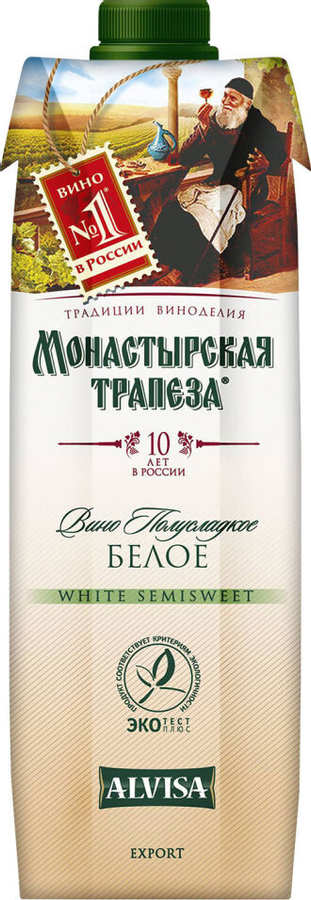 Вино «Монастырская Трапеза» белое полусладкое 11% 1.0л | Gradus Market
